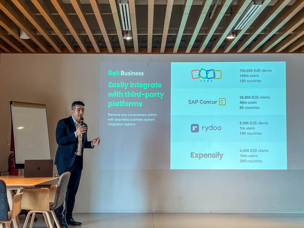 Afzan 在媒体问答中提到,Bolt Business 已可与多个国际商务系统整合,包括 Zoho、SAP Concur、Rydoo 及 Expensify,让企业在既有工作流程中直接使用 Bolt 的服务。他补充,该平台亦能支持跨境行程,例如员工临时在泰国或其他国家需要叫车时,系统会依当地规范与支付方式无缝运作。