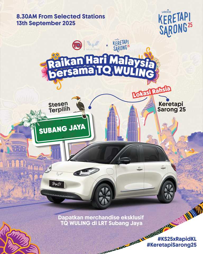 一年一度的Keretapi Sarong活动将于9月13日再度举行,届时成千上万的马来西亚人将身穿纱笼与传统服饰,共乘火车展现团结与多元文化。今年,TQ五菱(TQ WULING)宣布加入盛会,并带来即将在本地组装的Bingo EV电动车,成为焦点之一。