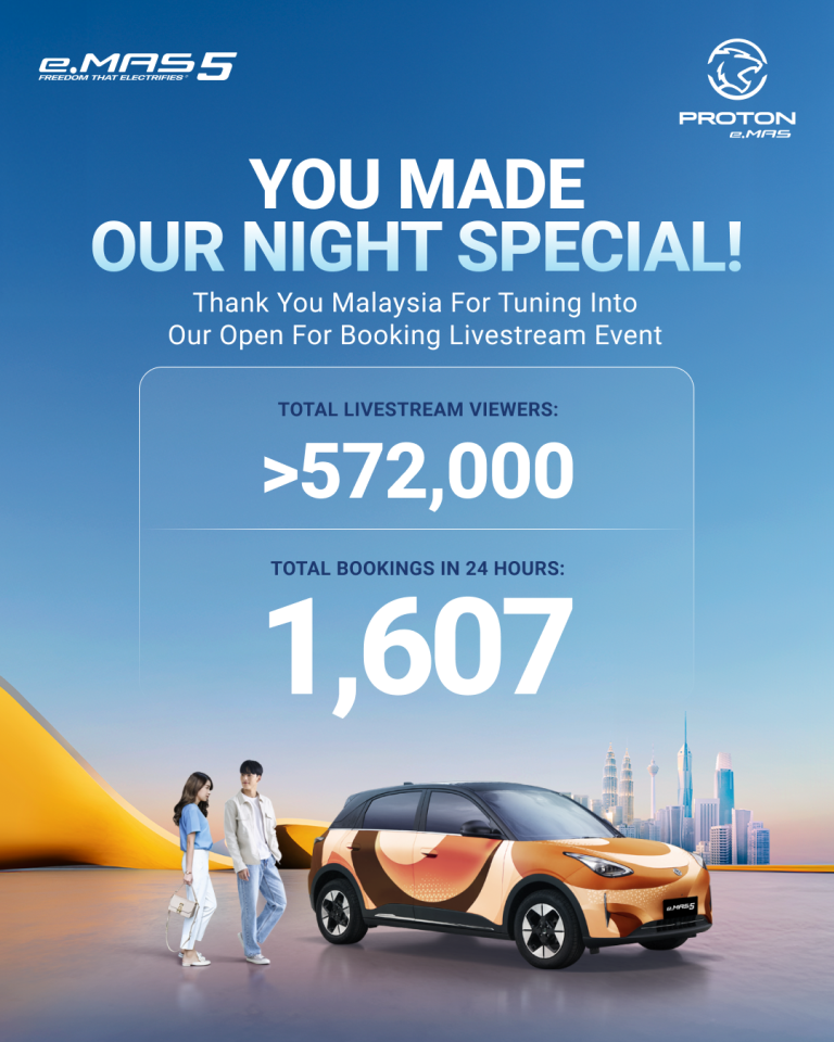 10月4日晚上,宝腾新能源科技有限公司(PRO-NET)以一场跨平台直播揭开了e.MAS 5的神秘面纱。直播在8个TikTok频道与1个Facebook页面同步上线,累计吸引超过57万人在线观看,总观看次数突破百万。