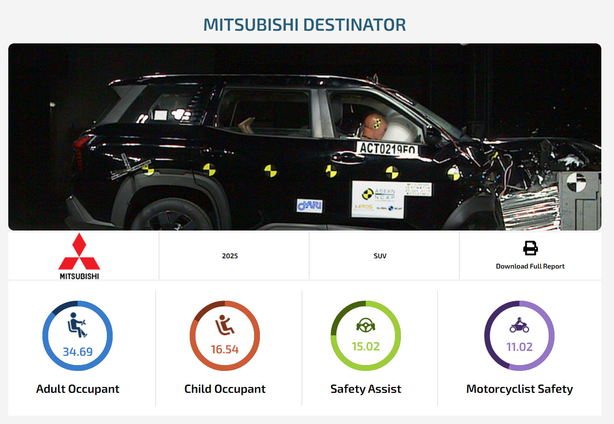 这项结果出炉之际,正值 2021—2025 年度评鉴协议期进入最后阶段,而三菱成为今年 ASEAN NCAP 第三个受评的日本品牌。DESTINATOR 在四大安全项目中均达到优异表现,包括: